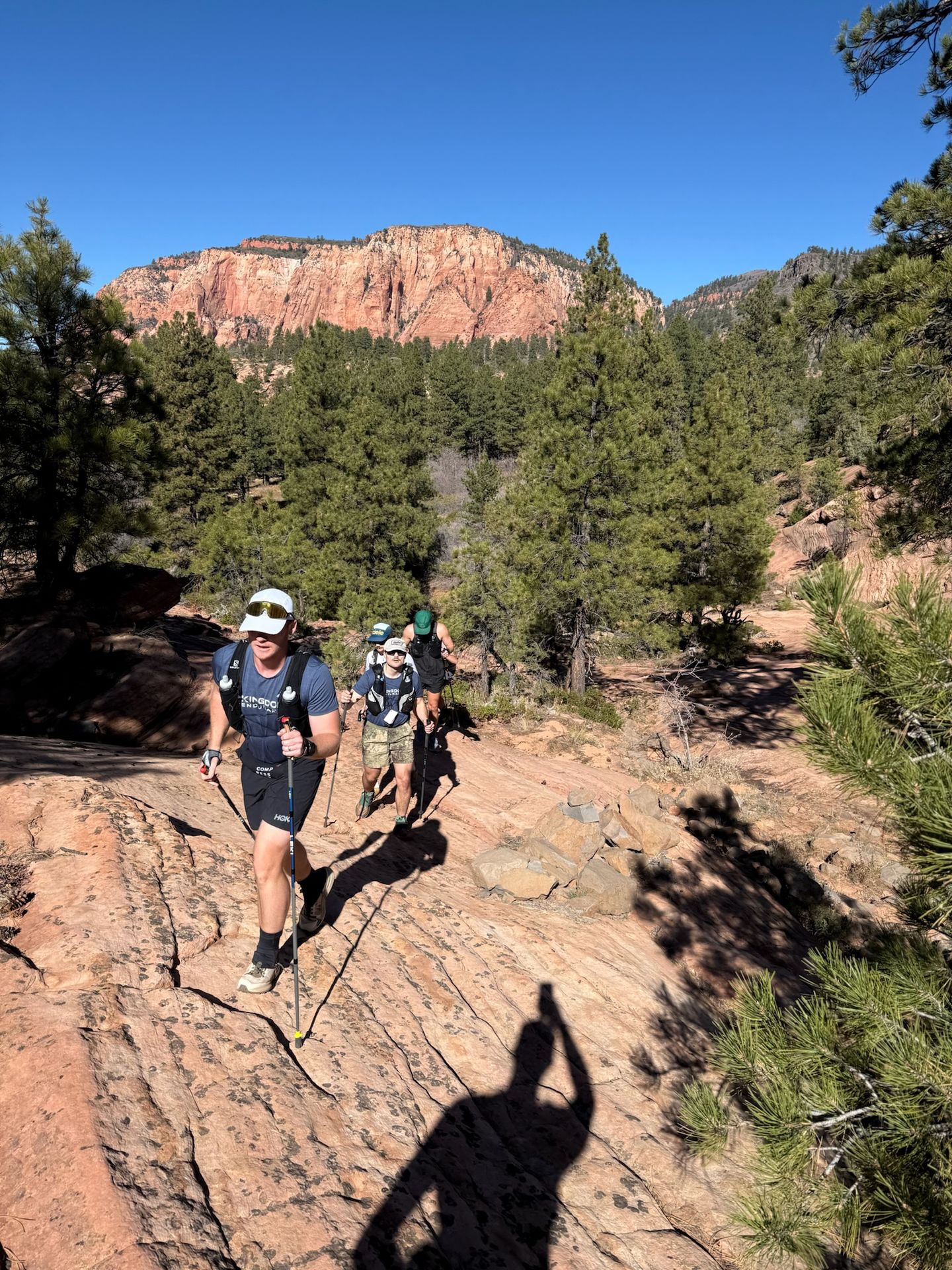 These middle miles were the peak of the day. The views over Zion Canyon were unreal. The weather was perfect. Everyone felt strong. Morale soared. We found our stride, and for a stretch it felt like we were unstoppable.