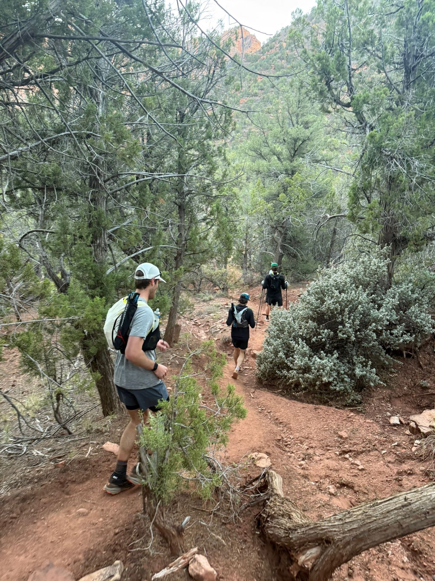 The early miles felt almost effortless. It was the kind of running where conversation flows easily. The sunrise painted the red rock in colors words struggle to describe. God’s creation was on full display, a constant reminder of His creativity and power. We were awestruck and felt grateful to be there. The group was tight, joking, settling into a rhythm, and having fun.
