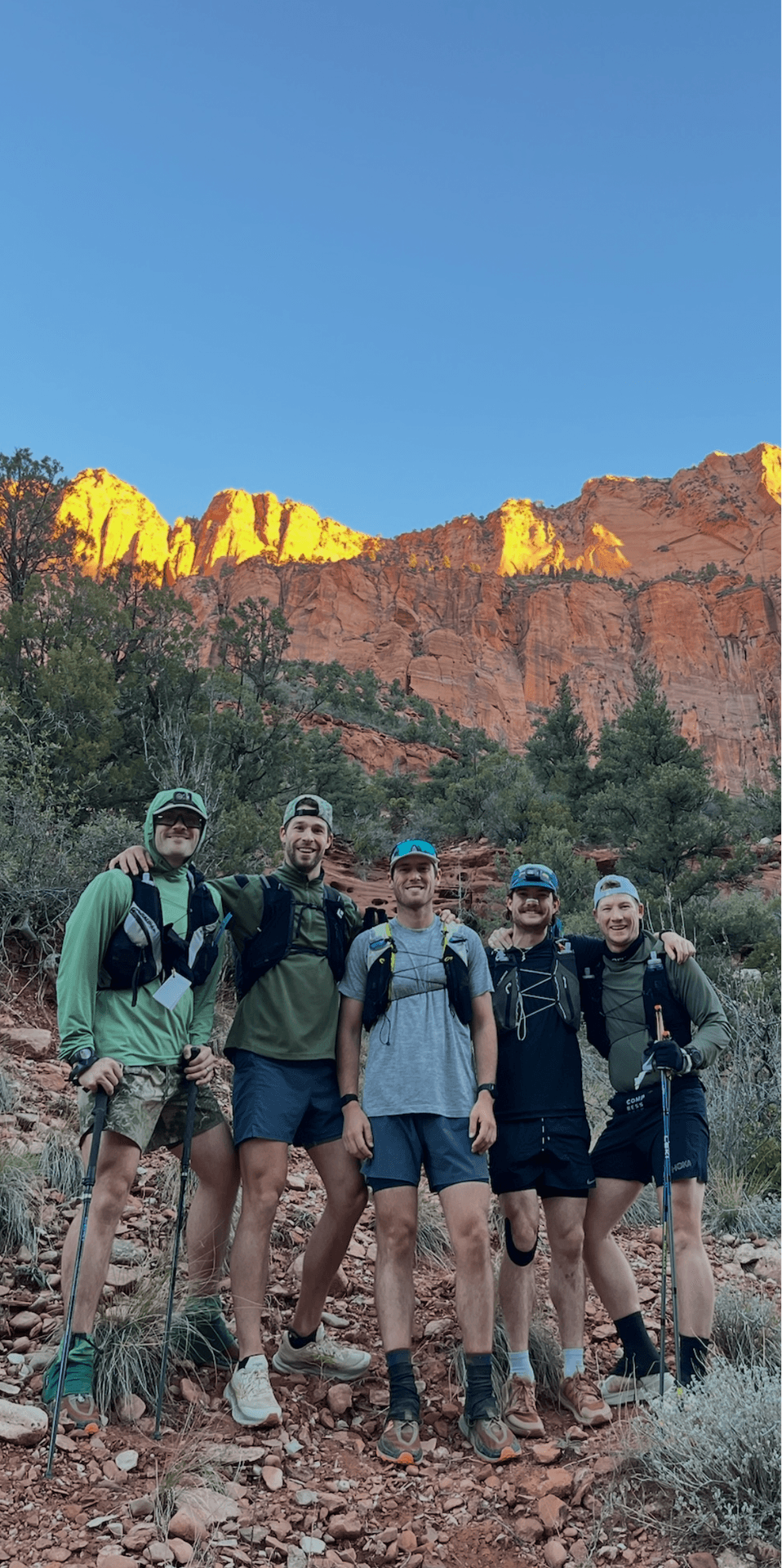 2 weeks ago, I had the privilege of running through one of America’s most beautiful national parks with five good buddies — Patrick, Sam, Russell, Colby, and Parker. For nearly a year, we had been planning and training for the Rim to Rim to Rim run in the Grand Canyon. But due to wildfires, we pivoted to Plan B- Zion National Park. As with any endurance challenge (and honestly, as with life) you have to be ready to adapt to and overcome the day’s challenges. This was the first of many we would face on this adventure.